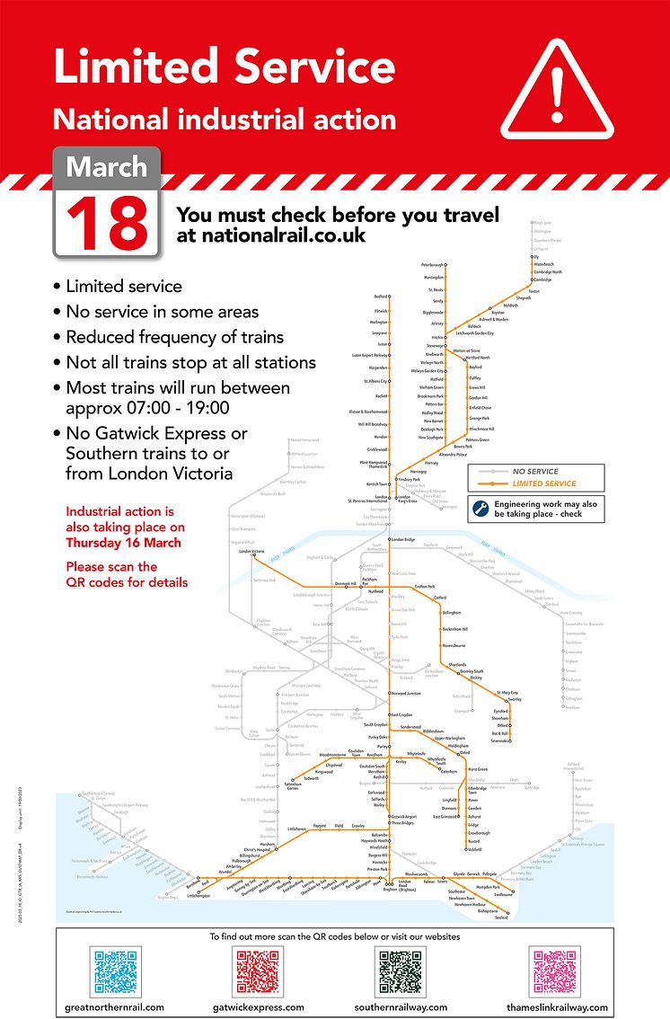 Saturday 18 March GTR strike map