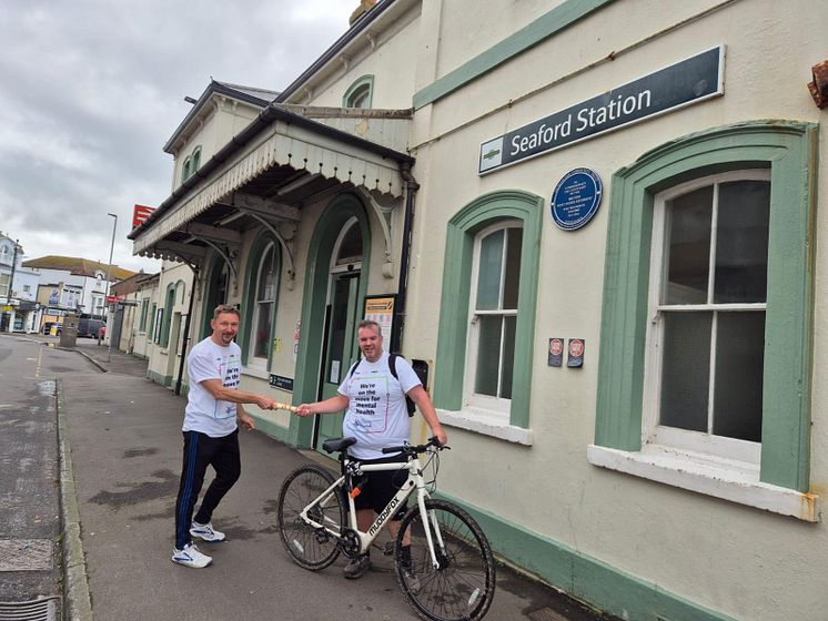 Station relay race swap over point at Seaford