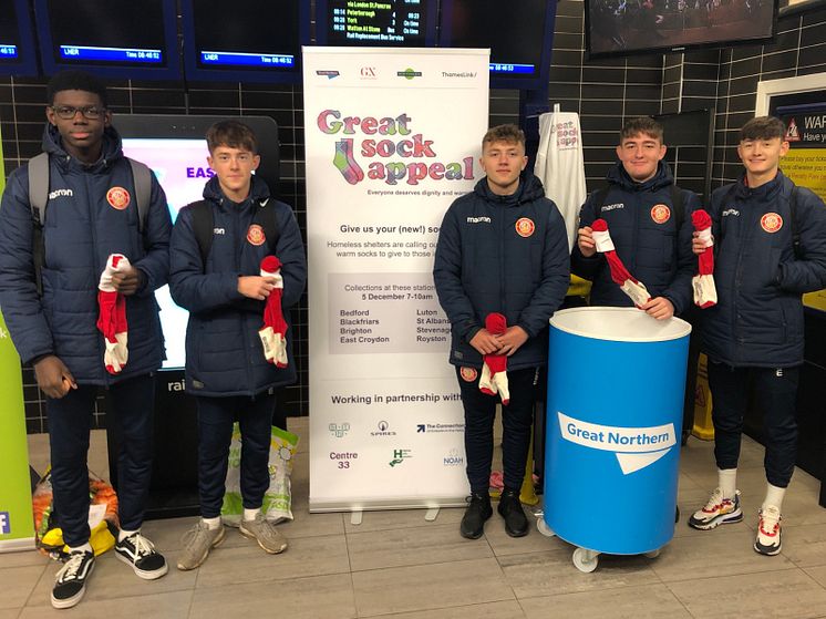 Stevenage Football Club Academy supported the Great Sock Appeal at Stevenage station
