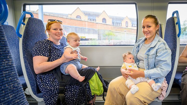 • George's owner's mum and friends pose with station manager Bernie Lee (right) and Mobile Operations Manager Terry Prestedge - and George
