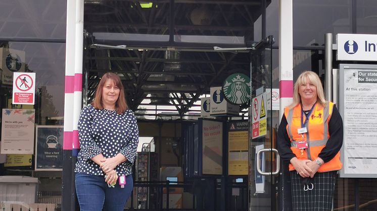 • Sarah Broughton, Project Manager at Bedford Foodbank, with Bernie Lee, Bedford Station Manager