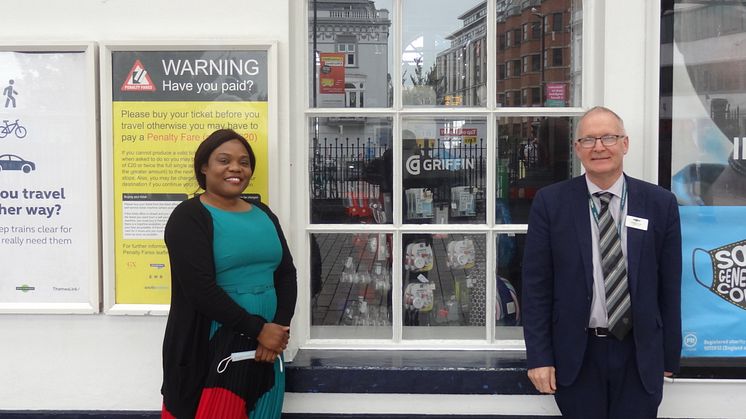 • Juliet Ssekitolek, Project, Marketing & Fundraising Manager for BMECP Brighton foodbank with Graham Thrower, Brighton Area Manager
