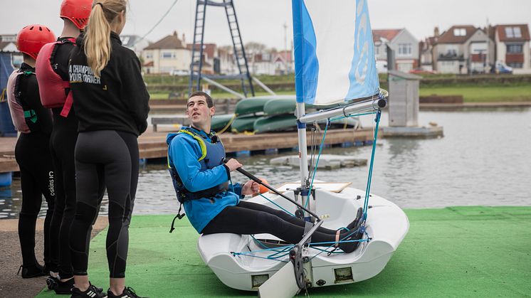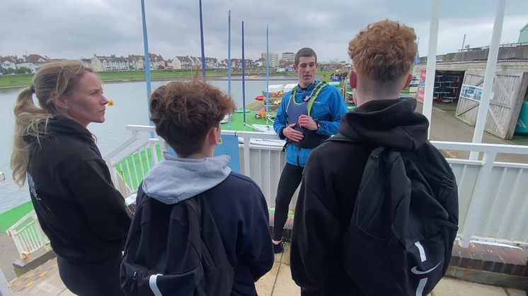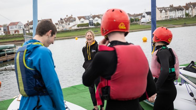 Double Olympic gold medallist Sarah Ayton takes youngsters sailing at Hove Lagoon