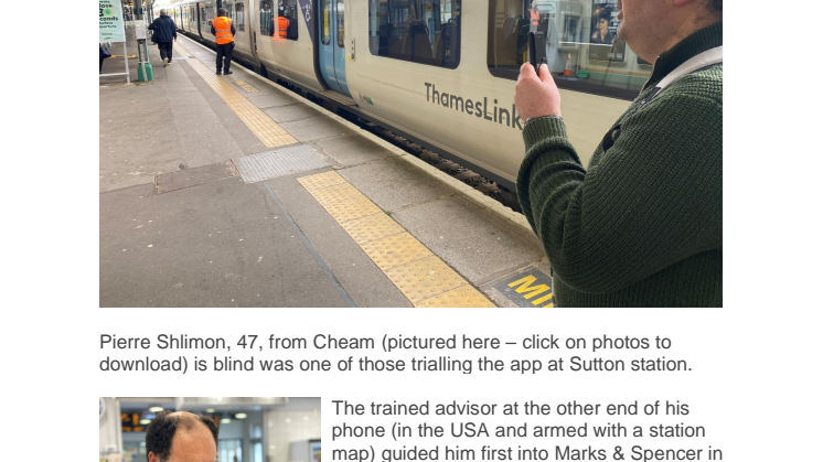 Blind passenger Pierre Shlimon at Sutton said: "It was quite like being with a relative, having someone holding my arm. Everything was very well explained as he guided me along." Read Pierre's case study here and download pictures below.