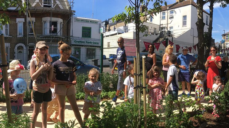 Families enjoyed a mini fete on Saturday 1 June, as they admired the newly created urban oasis, which contains more than 100 species of plants. The garden was officially opened by its designer Mark Lane along with councillor Sophie McGeevor, who is a Cabinet Member responsible for environment, waste, recycling, parks and green spaces at Lewisham Council.