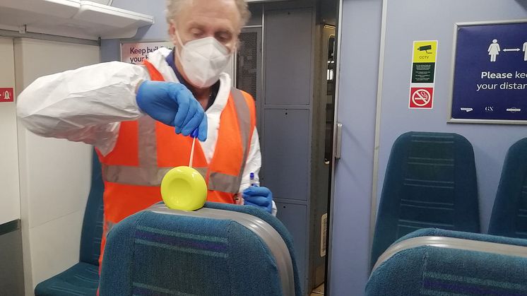 These latest independent lab tests confirm specifically that Covid-19 has not been found on surfaces in carriages selected at random from each of GTR’s nine train fleets, up to 23 days after they were treated with the long-lasting viruscide (23 days was the longest any one of the trains tested had been in service since the long-lasing viruscide had been applied; the viruscide has been shown to kill coronavirus for even longer - see above).