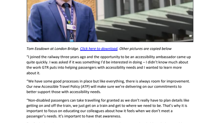 - GTR is also offering media access to two of its Accessibility Ambassadors who work on the network and champion excellent passenger assistance among colleagues.