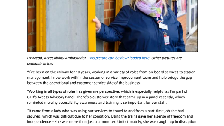 - GTR is offering media access to disabled members of its Access Advisory Panel, to speak about their experience and how GTR’s initiative will impact their day-to-day lives.