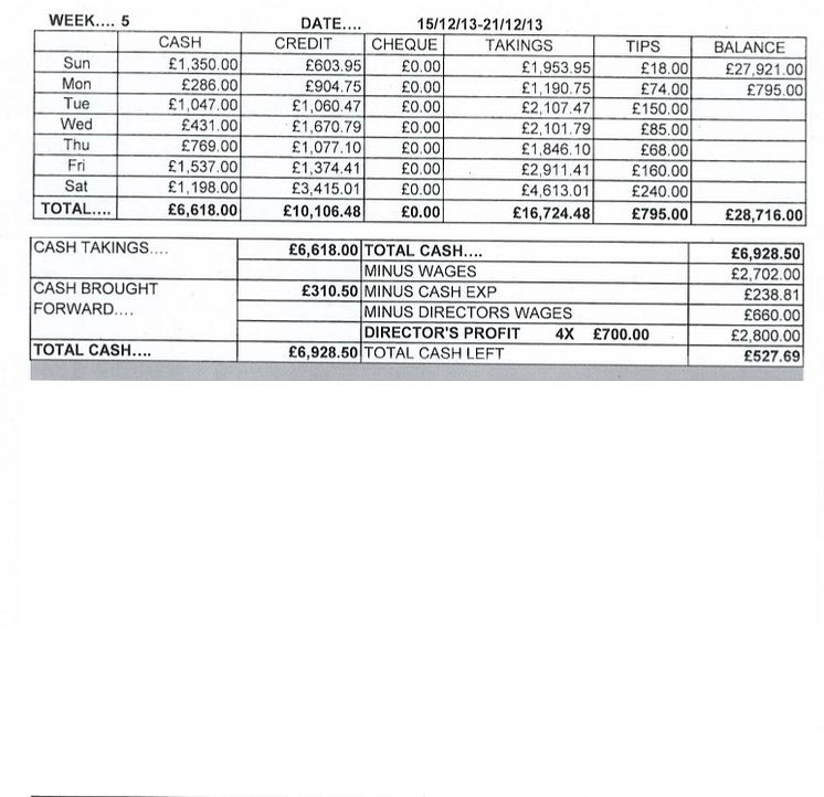 An example of the books that detailed the genuine takings (including cash and tips) for the Panache restuarant in Sutton Coldfield