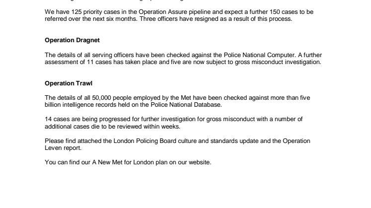 Today, we are publishing an update of progress to reform our Culture and Standards, ahead of the first London Policing Board on Tuesday, 26 September.