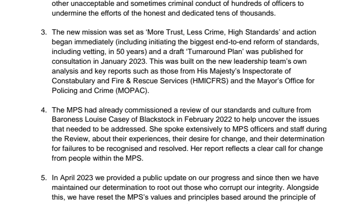 It encompasses our response to the Baroness Casey Review and recommendations by HM Inspectorate of Constabulary and Fire and Rescue Service.