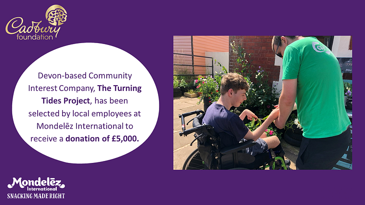 Jane Williams at The Turning Tides Project commented: “We’re thrilled to have received this generous donation from The Cadbury Foundation, especially because we were nominated and voted for by employees that are part of our local community.