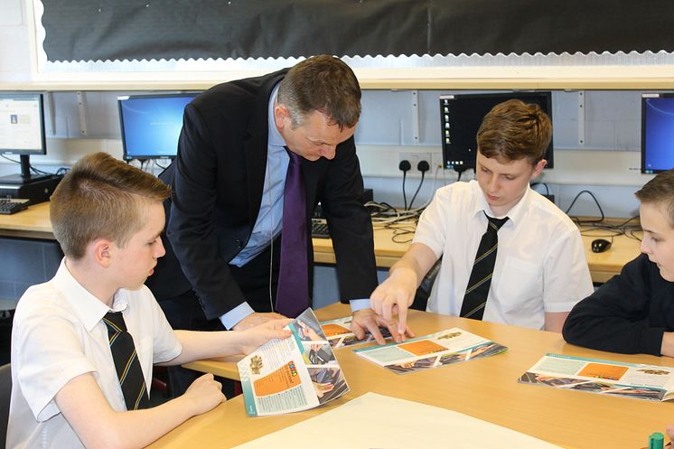 CSEF Schools Liaison Officer Michael Fitzgerald with S3 pupils at Springburn Academy in North Glasgow