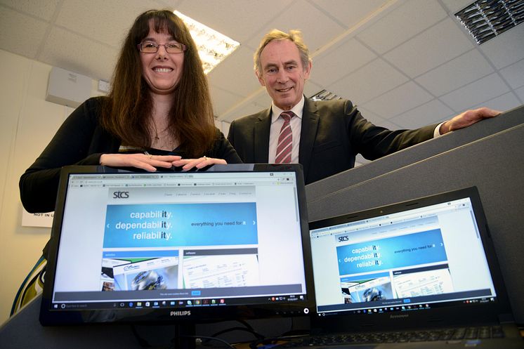 Northumbria University degree apprentice Jennifer Gane pictured with John Wiseman, director of STCS Ltd, which employs three degree apprentices