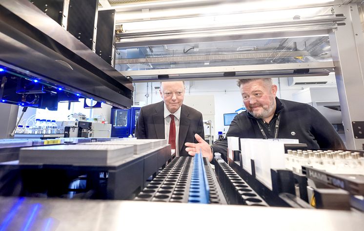 Professor Chris Whitty meeting Professor Darren Smith in Northumbria University's NU-OMICS genome sequencing lab