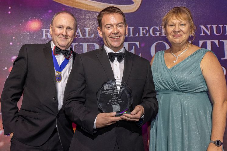 Northumbria University's Professor Paul Gill pictured (centre) at the RCN Wales Nurse of the Year Awards, where he won the Supporting Improvement Through Research award