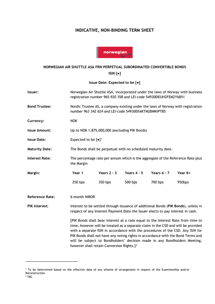 Norwegian presents update of indicative plan for exit from Irish examinership and Norwegian reconstruction processes