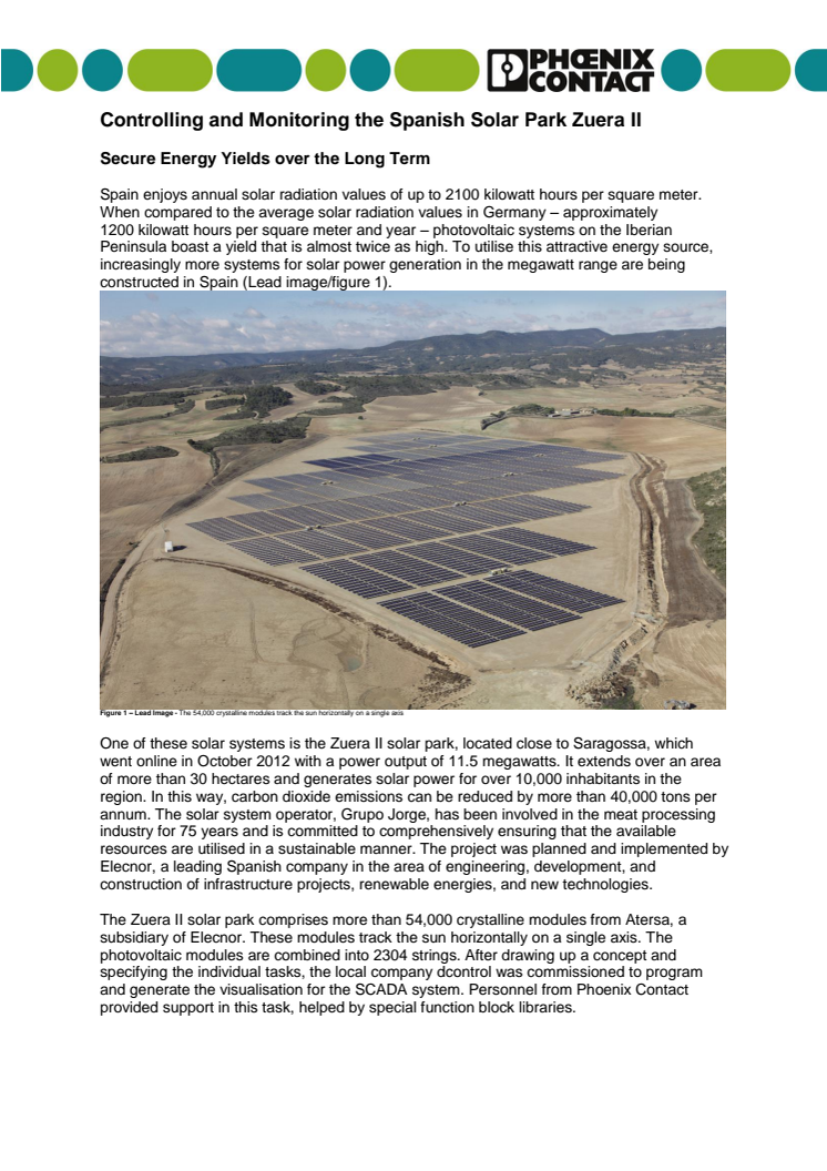 Controlling and Monitoring the Spanish Solar Park Zuera II