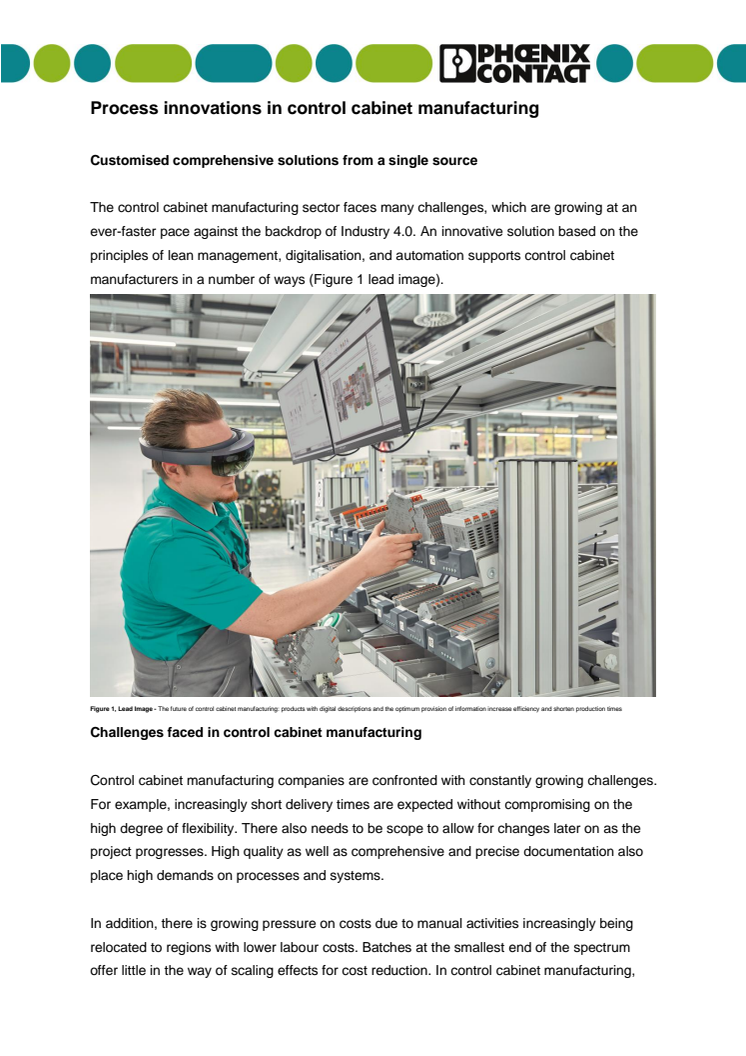 The control cabinet manufacturing sector faces many challenges, which are growing at an ever-faster pace against the backdrop of Industry 4.0. An innovative solution based on the principles of lean management, digitalisation, and automation supports control cabinet manufacturers in a number of ways .