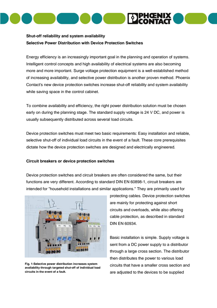 Energy efficiency is an increasingly important goal in the planning and operation of systems. Intelligent control concepts and high availability of electrical systems are also becoming more and more important. Surge voltage protection equipment is a well-established method of increasing availability, and selective power distribution is another proven method.