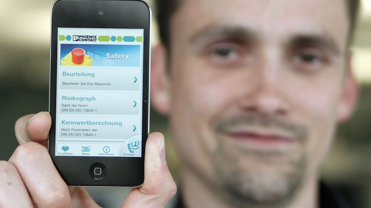 The new safety app, developed by certified safety experts with Phoenix Contact, is now available in English at no charge in the iTunes-Store under the "Safety Services" search term.