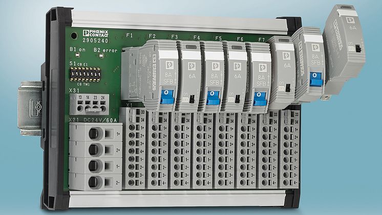 The new multi-channel device circuit breaker boards from Phoenix Contact are available with 4, 8, and 12 channels. The boards are very versatile as they can be fitted individually with thermomagnetic or electronic circuit breakers. They are particularly suitable for machine building and control and process technology.