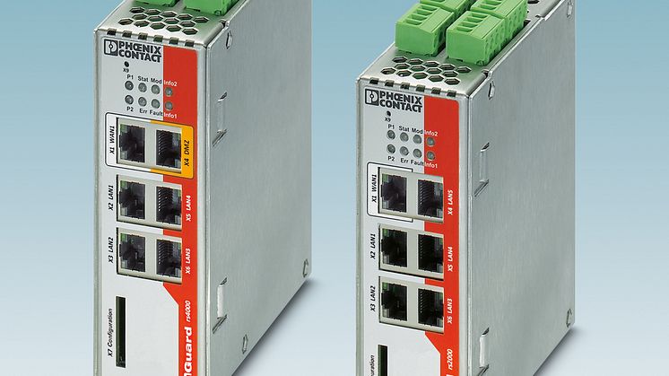The new FL MGuard is a security router and network switch in one. Two versions of the FL MGuard are available: The RS2005 provides five unmanaged ports, whereas the RS4004 provides four managed ports plus a DMZ port for the mutual securing of multiple networks.