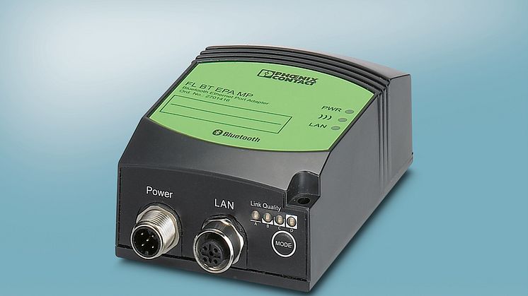The FL BT EPA MP wireless module adds a new Bluetooth access point to Phoenix Contact’s range of industrial wireless devices. The compact and rugged module reliably transfers Ethernet data over a distance of up to 250 m at a rate of up to 3 Mbps.