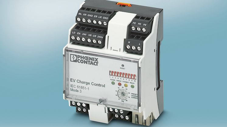 The new EV Charge Control series EVCC Basic charge controllers from Phoenix Contact have been developed specifically for use in simple charging stations. All essential functions that are needed for AC charging of an electric vehicle according to IEC 61851-1 are implemented on the controller’s board.