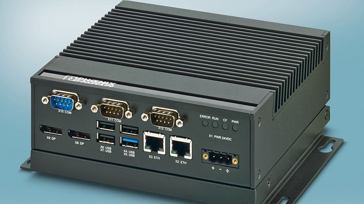 With a thermal design power (TDP) of 7.5 W, the box PC is particularly energy efficient. It is also designed for a temperature range of 0°C to +50°C and an input voltage of 24 V DC (+/-20%). Its compact design measuring 162 x 145 x 49 mm means it can be mounted directly on the DIN rail, thereby enabling it to be easily combined with other components from the Phoenix Contact product range to create a customer-focused system solution.