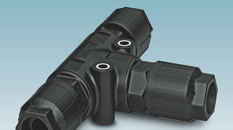 The 4-pos. T-distributors up to 2.5 mm² are new. They allow a flexible branch line to be created for consumers in the power distribution system. The T-distributors are reliable thanks to robust housings with IP66, IP 69 (2 m, 24 h) and IP69K degrees of protection. The electronics are thoroughly protected as the housings do not need to be opened, even when connecting the power supply.