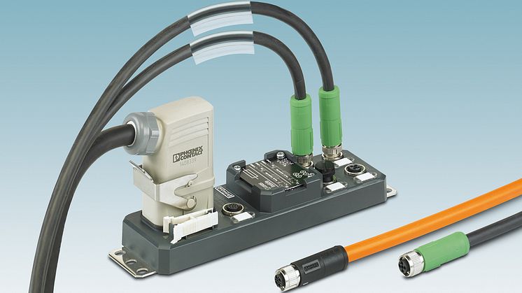 In field-based power distribution, at power supply voltages of 24 V a larger cable cross-section size is required in order to counteract voltage drop across long distances. The M12 power distribution boxes from Phoenix Contact, in combination with standard cables of up to 4x6 mm², are designed for this application.