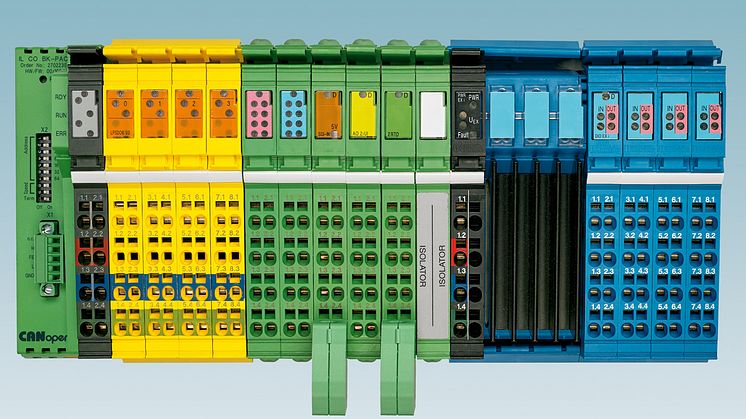 The Inline I/O system from Phoenix Contact can now also be used for the potentially explosive area. Ex i modules are simply aligned after the intrinsically safe supply terminal. Either only the blue Ex i modules are used for this or existing I/O stations from standard modules are extended with Ex i modules using the new isolator terminal.
