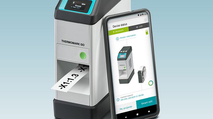 The new handy Thermomark GO thermal transfer printer from Phoenix Contact allows you to create markings flexibly, anywhere, and at any time.