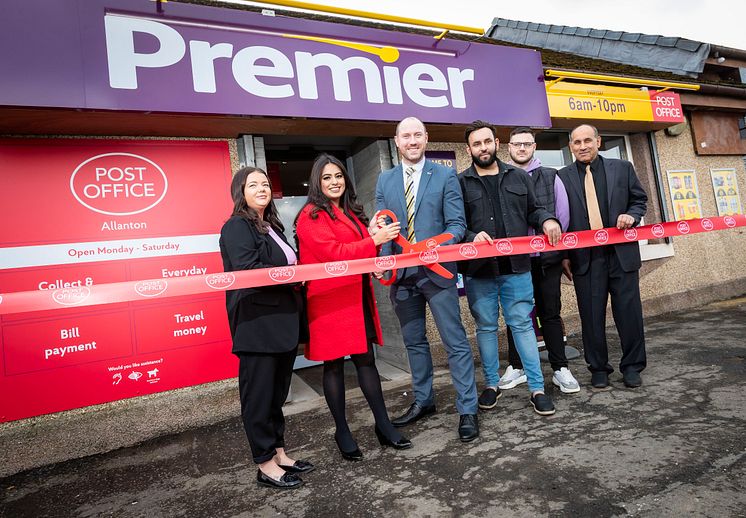Offical opening of Allanton PO with Anum Qaisir MP Neil Gray MSP and Postmaster Omar Nasir.JPG