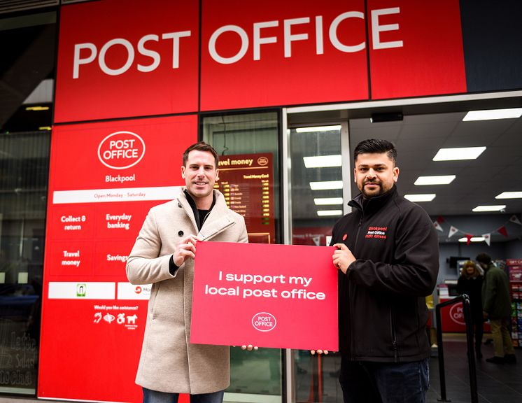 Scott Benton MP for Blackpool South visits his local Blackpool Post Office run by Azim Shaikh 02.12.22 - 02