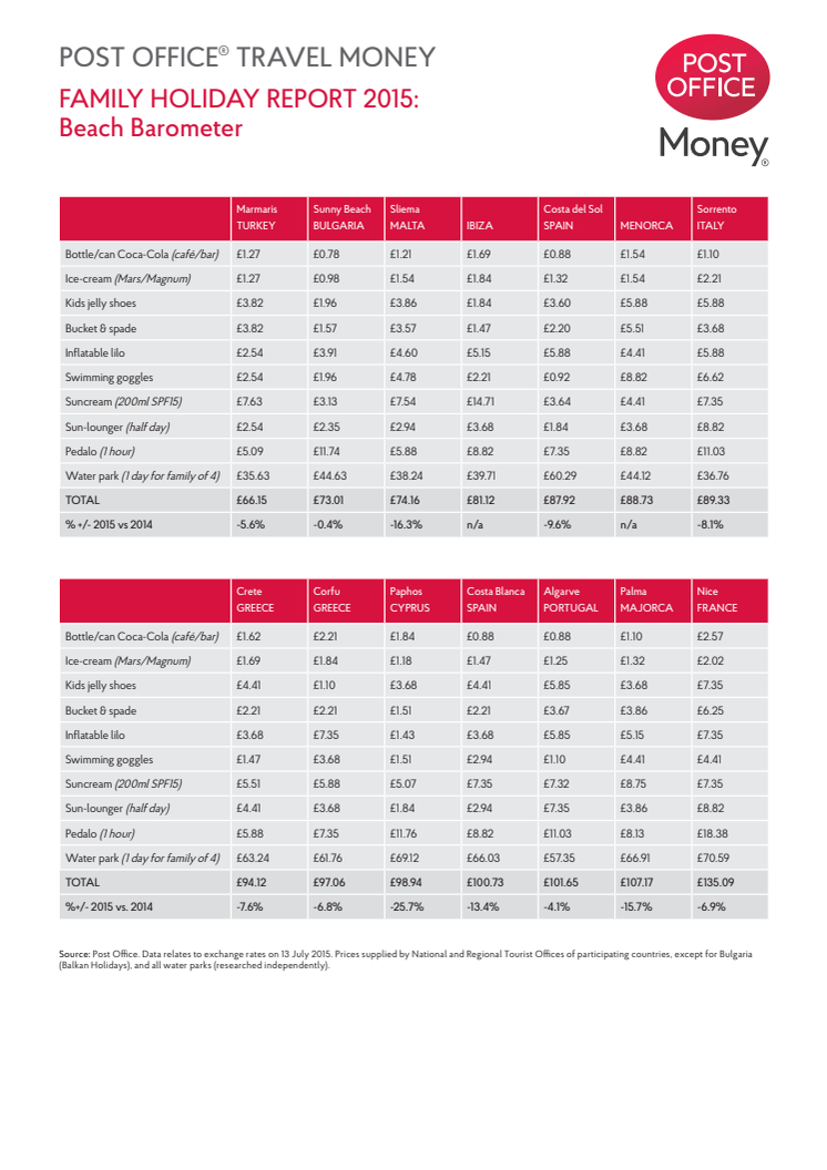 • SUNNY FORECAST FOR HOLIDAYMAKERS AS PRICES FALL ABROAD