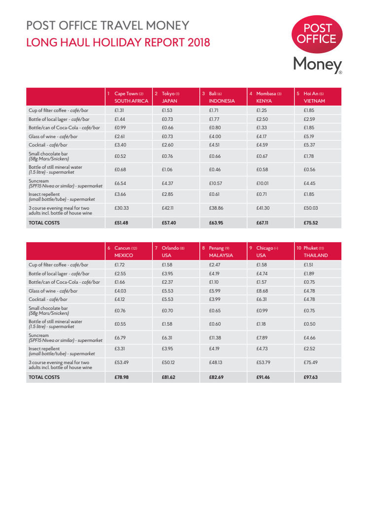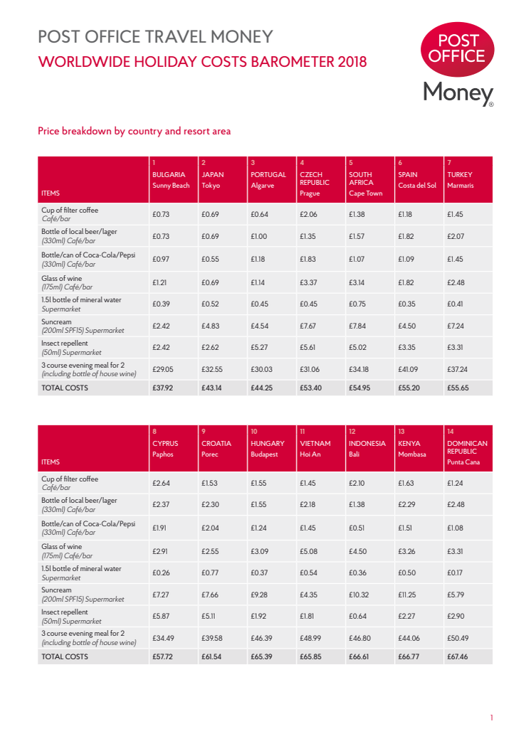 • Destinations where the holiday purse will stretch furthest