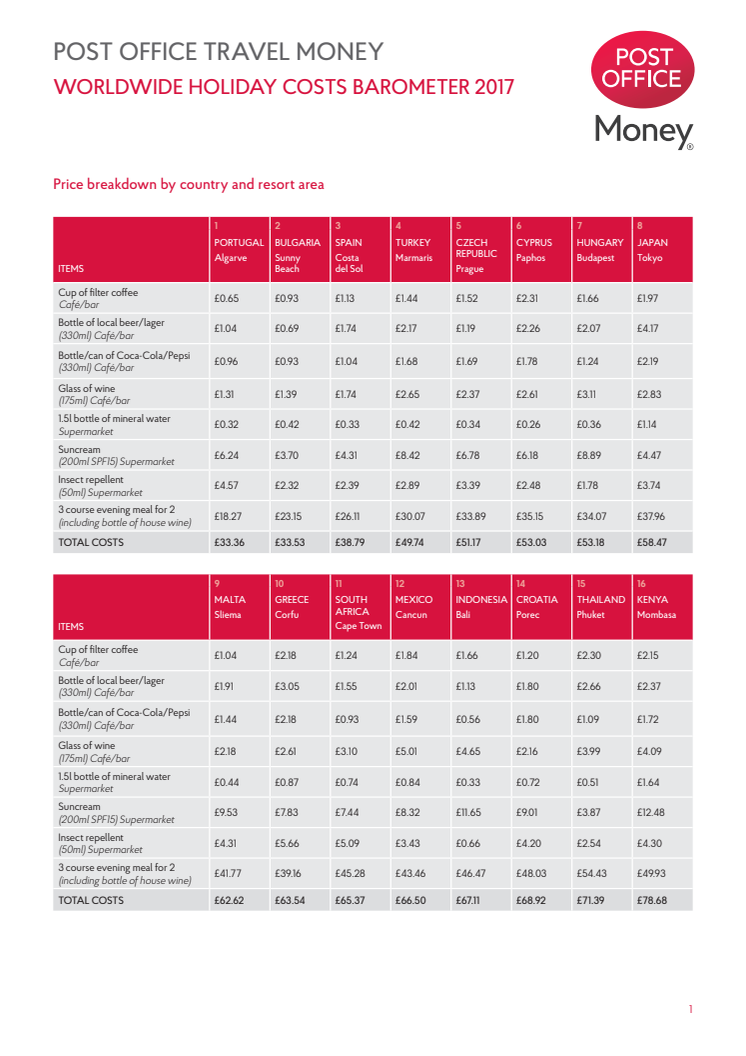 • Worldwide barometer reveals price falls in holiday hotspots