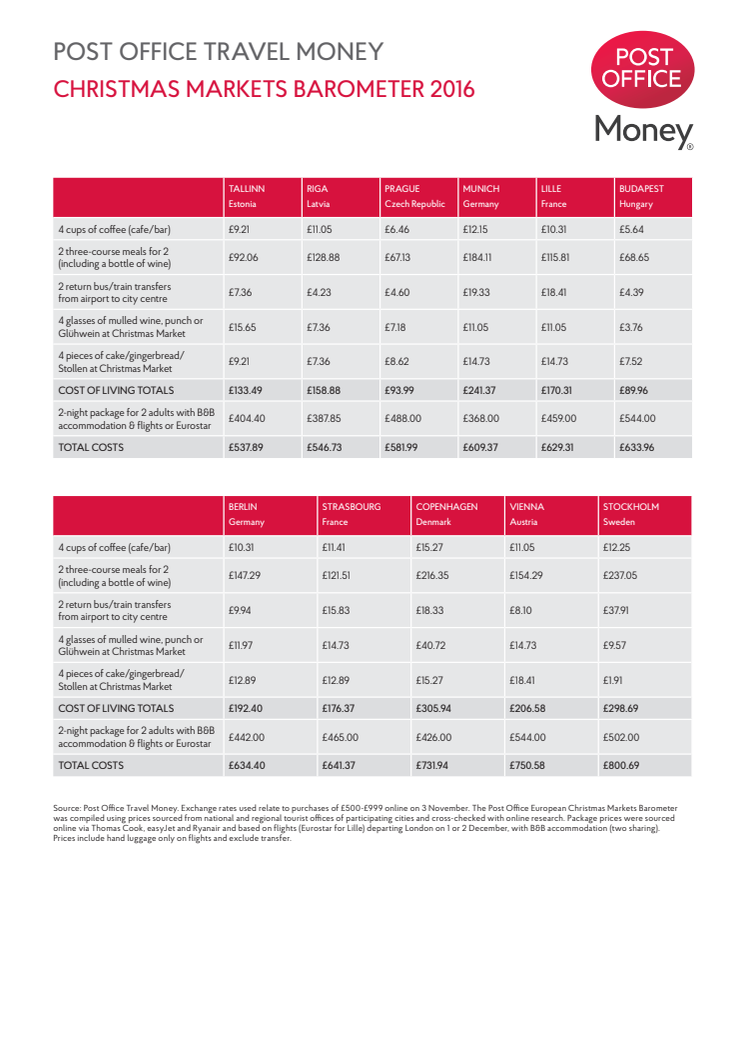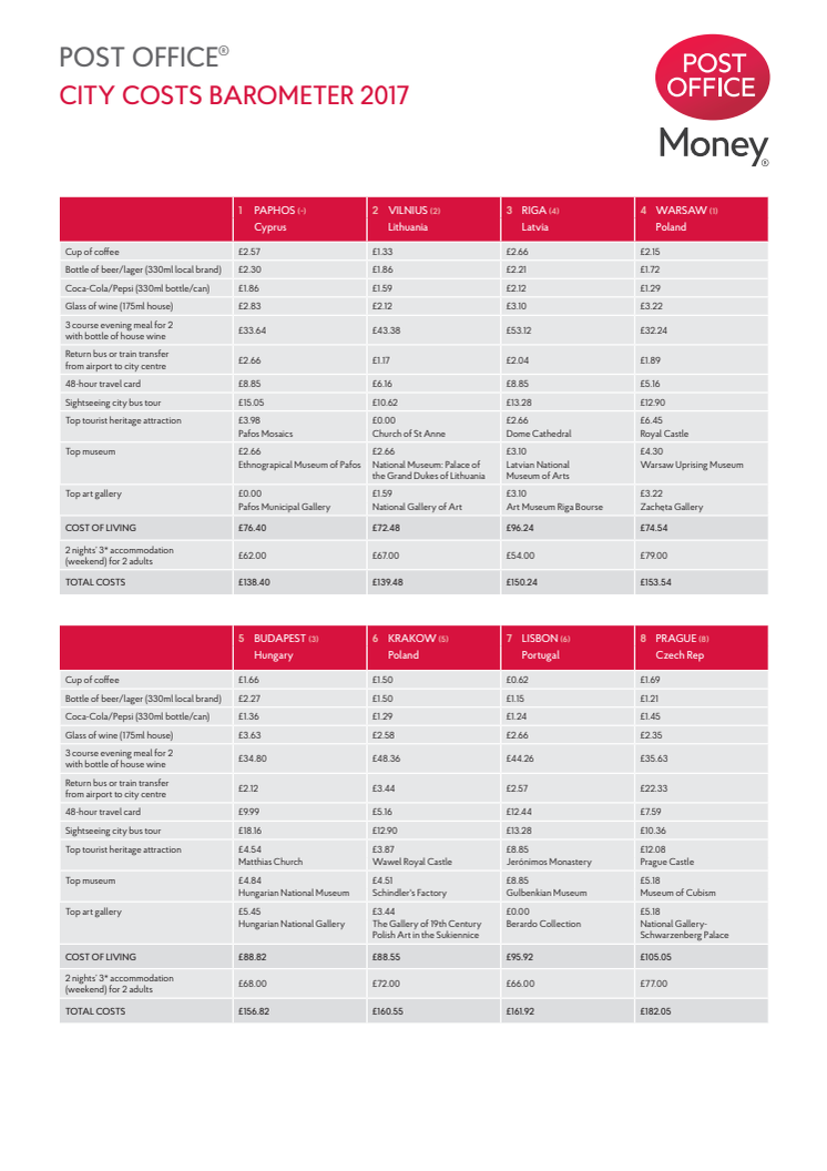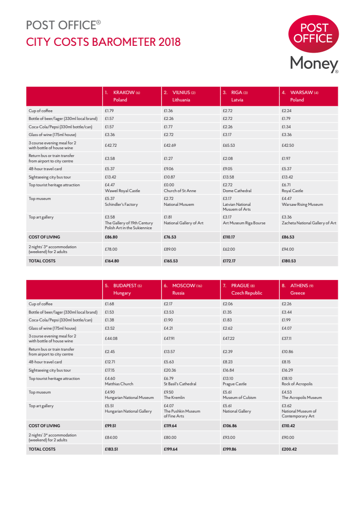 • Clean sweep for Eastern Europe as Post Office reveals best value cities for a pound-stretching break