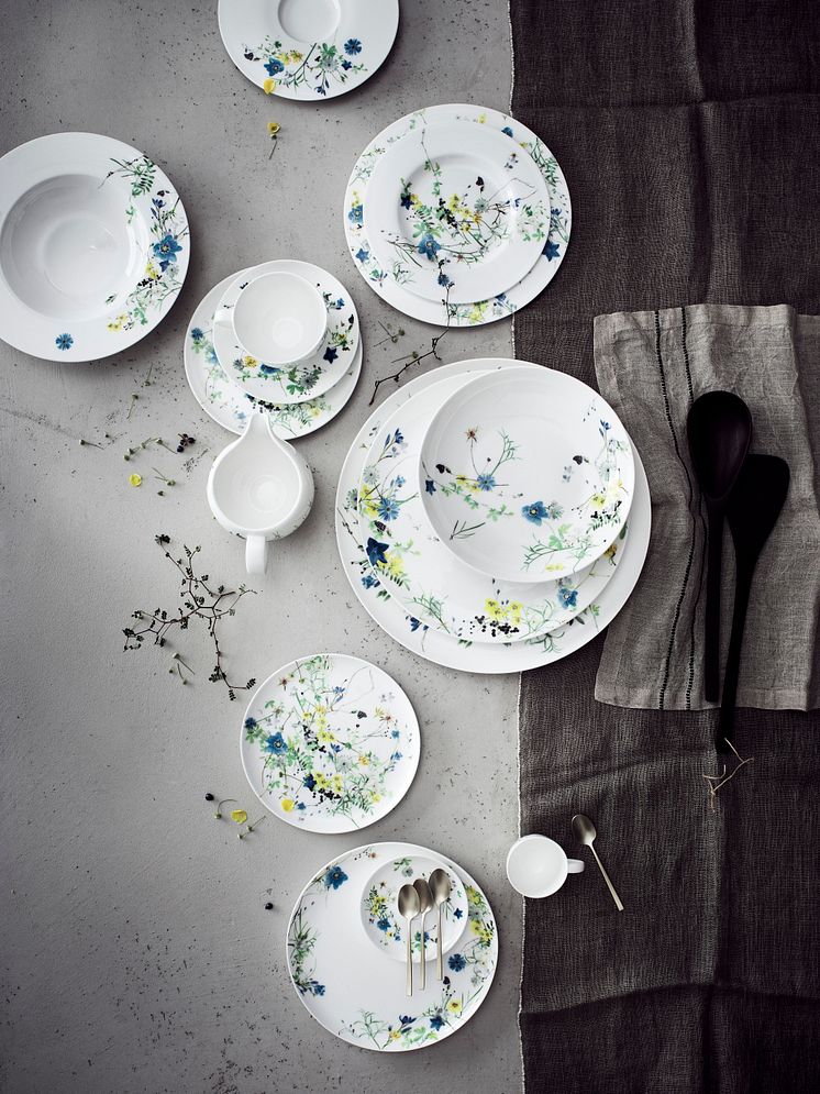 One of the best things about winter is the upcoming spring. With vivid colours, flowers, mild winds, it conveys a romantic mood. Swiss textile designer Regula Stüdli collected these poetic impressions on the fine bone china and created the graceful floral décors Fleurs Sauvages, Fleurs des Alpes and Grand Air as a virtuous ode to spring.