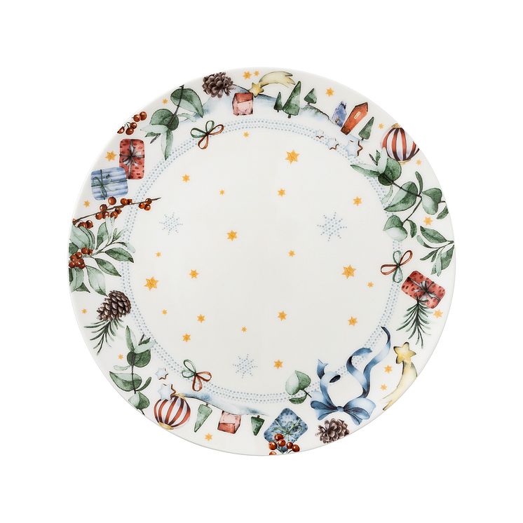 In 2016, the Hutschenreuther Christmas Atelier launched its popular collectible series “Christmas Carols.” This year, the cherished German carol “Alle Jahre wieder” (Every Year Again) is introduced as a new motif on porcelain. The delicate design features not only the musical notes of the song, but also festive elements such as mistletoe, the Star of Bethlehem, gifts, ribbons, and pinecones – all in a joyful palette of green, blue, yellow, and red – creating a warm and festive atmosphere.