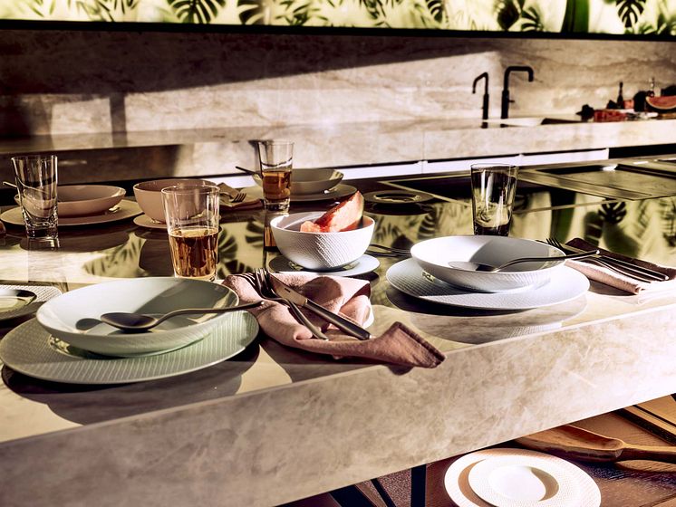Kumi von Rosenthal is inspired by the art of craftsmanship: “Kumihimo”, a traditional Japanese technique of intricately braiding yarns, ribbons and cords, lends its name to the collection. The delicate porcelain creations are presented in the pastel shades White Tone, Blue Tone, Mint Tone and Rose Tone, which give the collection its own gentle yet vibrant character.