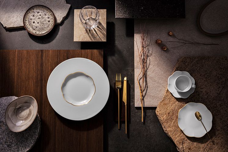 Inspired by this tradition, Rosenthal’s latest collection transforms tableware into a true poetic masterpiece. Instead of stanzas and verses, it harmoniously blends organic and floral forms with a variety of materials. Culinary delights can be elegantly presented across multiple levels, while the collection captivates not only with its exquisite porcelain but also with the seamless interplay of stoneware and glass.