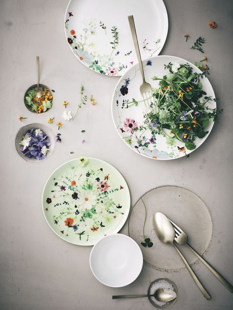 With the floral décor "Grand Air", Rosenthal and Regula Stüdli bring the purity of nature to the table. The textile designer combines fragrant herbs such as rosemary, thyme and lavender, bright meadow flowers such as nasturtium and marigold with wild flowers such as cornflower, pansies and daisies.