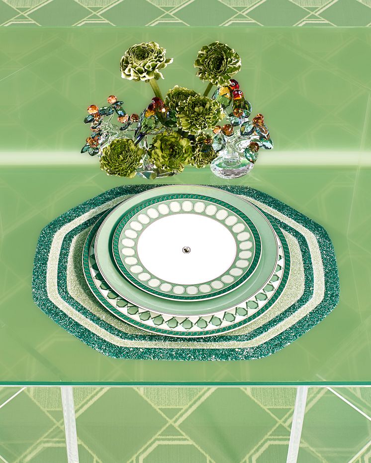 Since 2022, the sparkling world of Swarovski has met the finest Rosenthal porcelain and conjured up elegance on festively laid tables. The popular Swarovski x Rosenthal collection "Signum" has, since then, been captivating with designs in the vibrant colors Fern (green), Rose, Azure and Jonquil (yellow). Finely worked patterns in thin golden lines trace the octagon on porcelain that is typical of Swarovski. The decor pays homage to the artist collective Wiener Werkstätte of the 19th century.