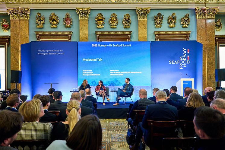 NSC Communication's Director Martin Skaug moderates panel discussion between Nicola Hunter, Head of Seafood Buying and Strategic Sourcing at Hilton Foods Seachill and Josefine Voraa, Seafood Analyst with the Norwegian Seafood Council