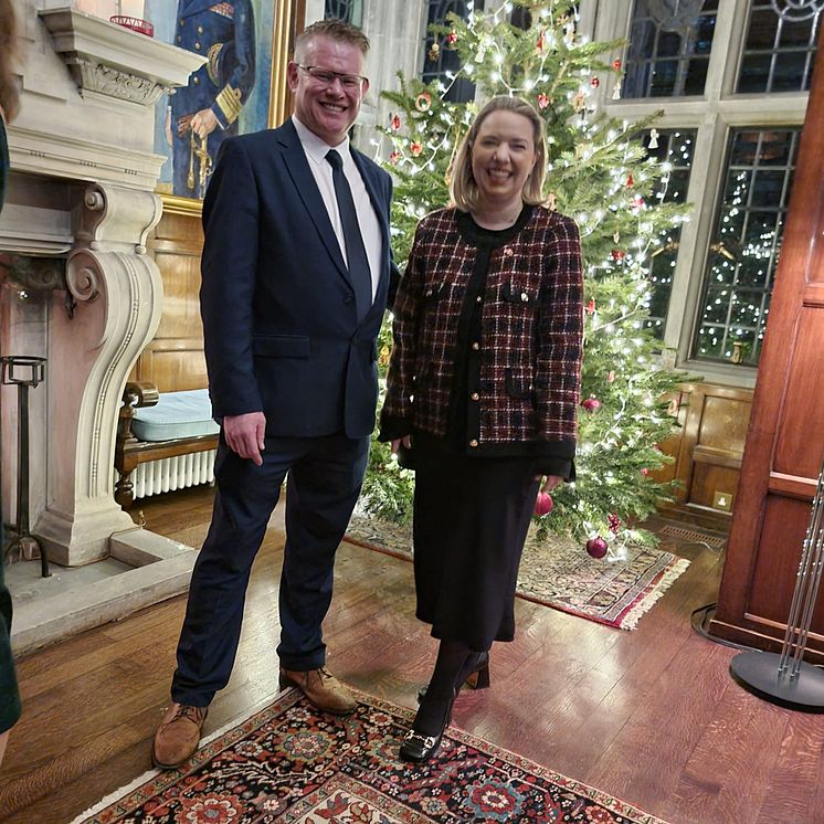 Victoria Braathen, NSC UK Director with Andrew Crook, NFFF President at Norwegian Embassy in UK