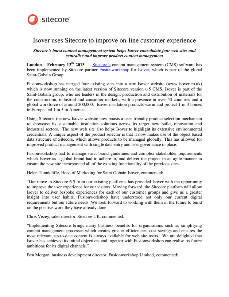 Sitecore’s latest content management system helps Isover consolidate four web sites and centralise and improve product content management