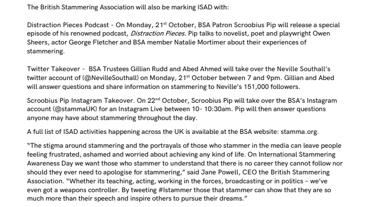 The British Stammering Association will also be marking ISAD with: